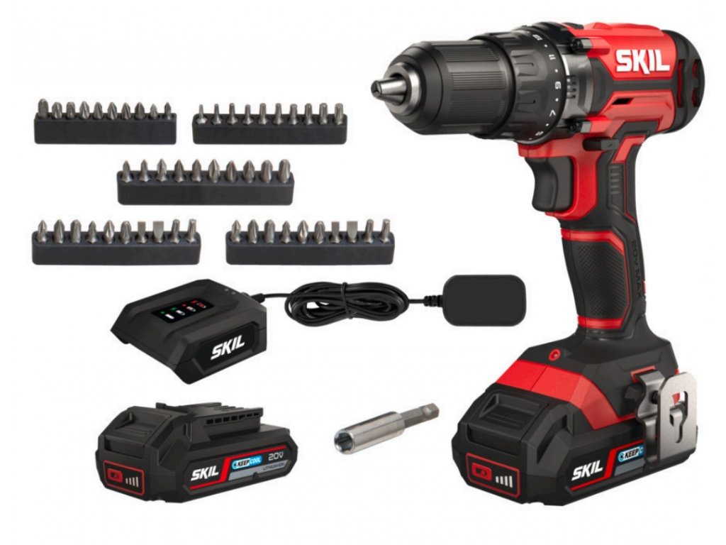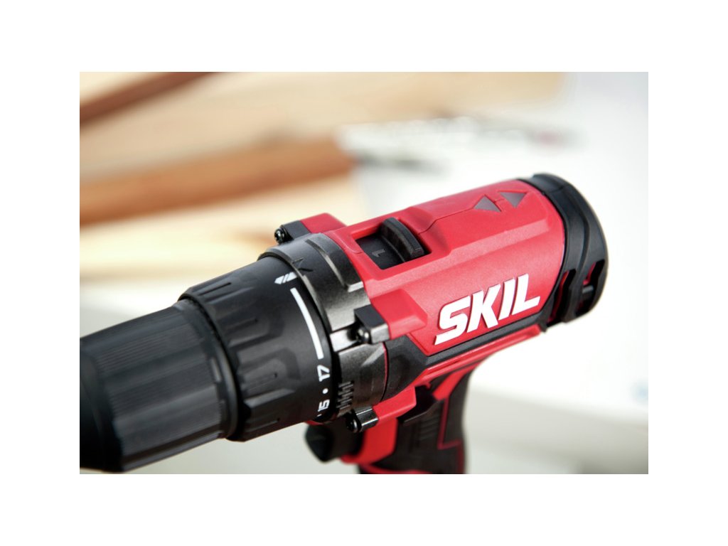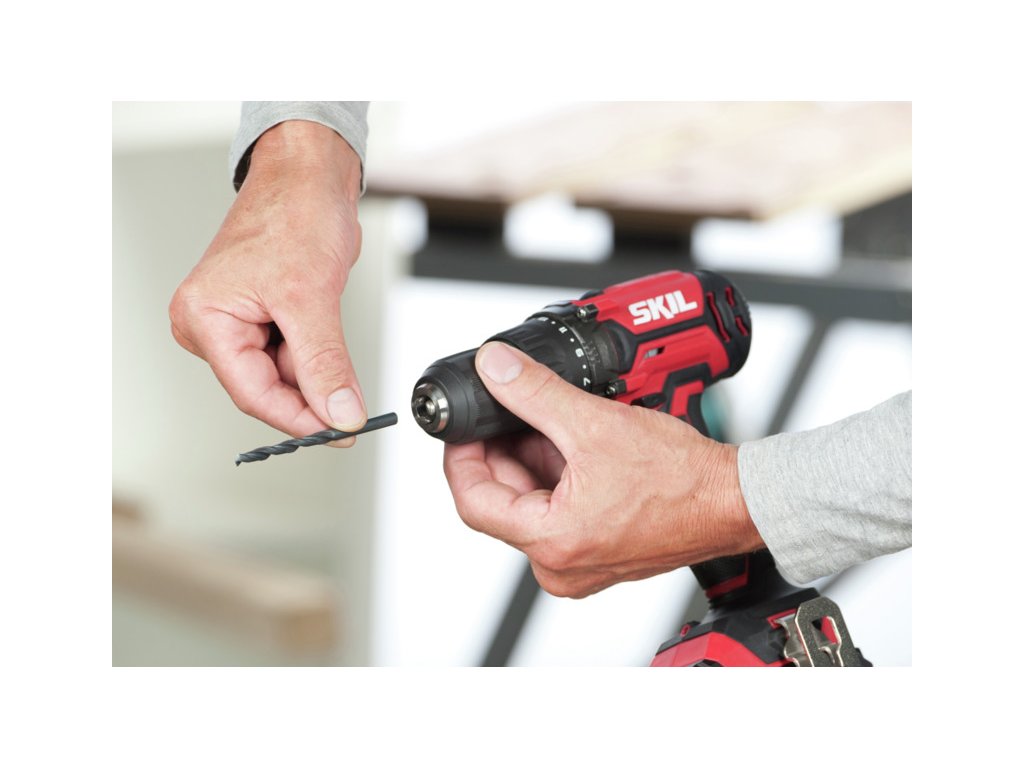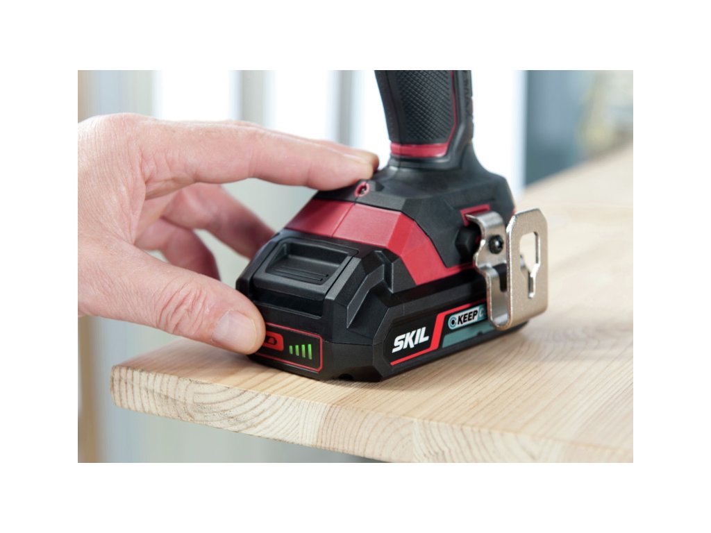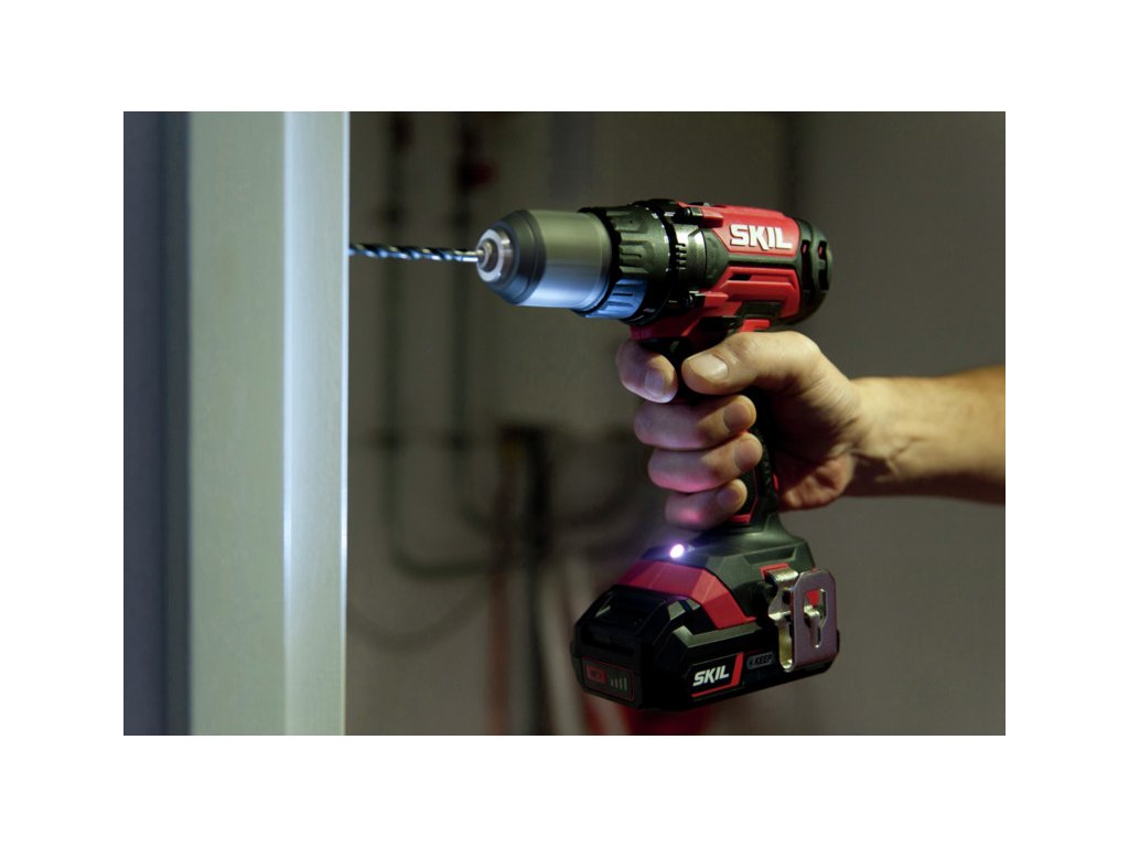 Akumulátorová vŕtačka „20V Max“ (18 V) SKIL 3008 pokrýva všetky vaše potreby pri svojpomocných prácach pri najnáročnejšom skrutkovaní a vŕtaní do dreva a kovu. Má dva prevody, ktoré môžete použiť buď na rýchle vŕtanie alebo na náročné skrutkovanie. 17+1 nastavenie krútiaceho momentu zabezpečuje presné výsledky so 17 nastaveniami pre skrutkovanie a ďalším nastavením pre vŕtanie. Vďaka bezkľúčovému 13 mm skľučovadlu s jednoduchou objímkou môžete príslušenstvo pohodlne vymieňať. Automatická aretácia vretena umožňuje ľahkú výmenu príslušenstva. Celkovo toto univerzálne náradie skutočne ponúka všetko, čo potrebujete: spoľahlivú technológiu lítiovo-iónového (Li-Ion) akumulátora, nastaviteľné otáčky pre úplné ovládanie a LED svetlo, ktoré zabezpečuje dobrú viditeľnosť obrobku. Toto náradie má zároveň šikovný LED ukazovateľ smeru chodu, takže môžete okamžite vidieť smer zavrtávania. V neposlednom rade mäkké držadlo s ergonomickým dizajnom poskytuje mimoriadny pracovný komfort. Patentovaný ukazovateľ úrovne nabitia akumulátora ukazuje úroveň nabitia akumulátora. SKIL 3008 BA sa dodáva s dvoma akumulátormi „20V Max“ (18 V) 2,0 Ah „Keep Cool™“, nabíjačkou, súpravou 50 kusov príslušenstva na skrutkovanie, magnetickým držiakom hrotov a sponou na opasok.