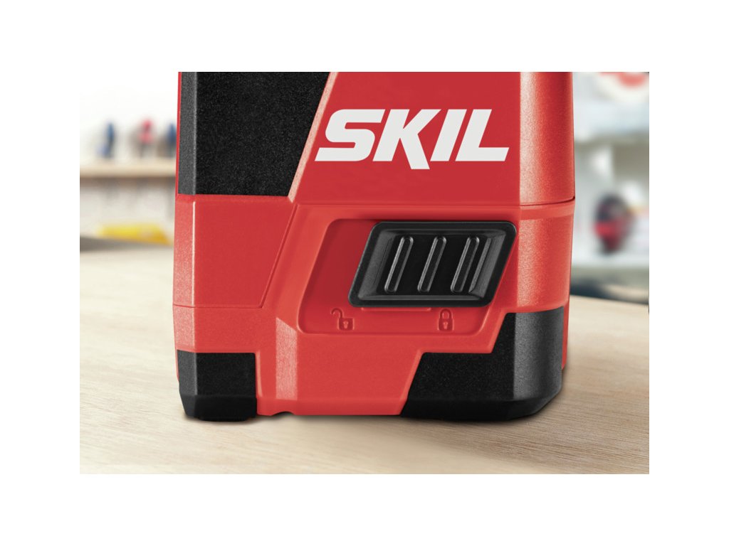 SKIL 1910 je krížový laser, ktorý premieta presne skrížené horizontálne a vertikálne laserové čiary. Výborná pomôcka pre domácich majstrov pri obkladaní, maľovaní či vešaní políc. Tento krížový laser má zabudovanú lítiovo-iónový akumulátor, ktorý sa dá ľahko nabiť cez zabudovaný micro-USB nabíjací port. Laserové čiary sa vyrovnávajú automaticky v samonivelačnom režime. Ak pracujete na svojpomocných prácach nevyžadujúcich nivelovanú projekciu, ľahko prepnete do režimu manuálnej nivelácie. Umožňuje premietať diagonálne línie pri inštalácii zábradlia. Vďaka pracovnému dosahu až do 15 metrov, kompaktnému dizajnu s mäkkým držadlom a jednoduchým používateľským rozhraním je SKIL 1910 skvelým riešením pre vaše nivelačné práce. Okrem toho má krížový laser 1/4" závitový montážny otvor na vrchnej a spodnej strane pre ľahké upevnenie svorky alebo statívu. V neposlednom rade užitočný ukazovateľ úrovne nabitia akumulátora jasne zobrazuje zostávajúcu kapacitu akumulátora. SKIL 1910 AA sa dodáva s flexibilnou svorkou, ktorú možno pripojiť na rôzne povrchy, a nabíjacím káblom s USB.
